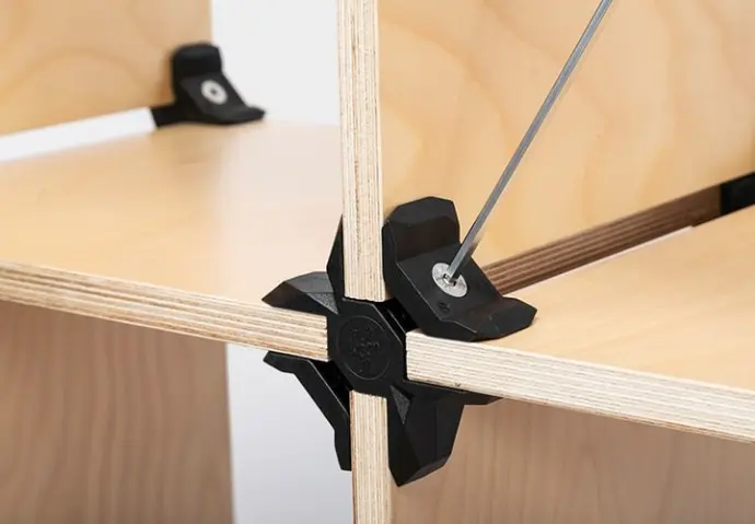 Les connecteurs PlayWood sont des éléments de fixation innovants conçus pour assembler facilement des panneaux en bois, OSB, MDF ou contreplaqué. Fabriqués en polymère renforcé à haute résistance, ils se fixent simplement avec une clé Allen, sans besoin de vis, de colle ni d’outils complexes.